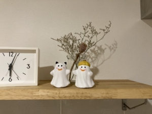 100円ショップで見つけた可愛いオバケちゃんをお迎えして、お家に飾っています。